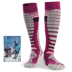 [TOUKAWA] スキー 靴下 メリノウール スキーソックス スノーボード 抗菌 防臭 着圧 防寒靴下 冬用 冷え性対策 アウトドアソックス 吸汗 速乾 パイル編み 通気性 水洗い可 レディース Mサイズ ローズ色