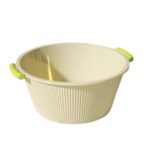 淡緑黄色の家庭用洗面器は、特大サイズで両耳が肥厚したプラスチック製。洗濯機の掃除や足湯、キッチン、トイレでの利用に最適。衣類洗いや足洗いにも便利なアイテムです。