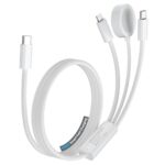 iCarez 3in1急速充電ケーブル 1.5mは、USB-C、Lightning、Micro USBの3種類の接続に対応し、デバイスを迅速に充電可能。耐久性の高い素材を使用し、絡みにくい設計。