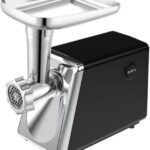 Heuitgs 電動肉切り機は220Vで家庭用・業務用の両方に対応。3種類の切断モードに腸詰めノズル付き。肉挽きや野菜刻みに便利な食品級ステンレス製、切断皿も同梱。