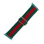 Apple Watch用の伸びるソロループバンド。グリーン、レッド、ブラックのストライプデザインで、ツートンカラーのラージサイズ。並行輸入品です。