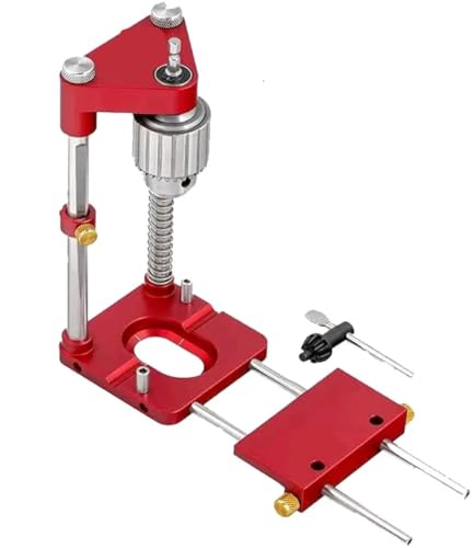 EVREFIN高精度穴あけスタンドはアルミニウム合金製で、90°垂直穴あけが可能。深さ調節機能あり、耐摩耗設計。家庭用・工業用に適した携帯ベルト式ポジショナ。サイズ:30.5*14.5*4.5cm、色:赤。