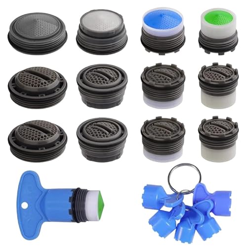 蛇口エアレーター12個、取り外しツール5個付。M 16.5mm、18.5mm、21.5mm、24mmの高低流量制限器に対応。バスルームやキッチンに最適。