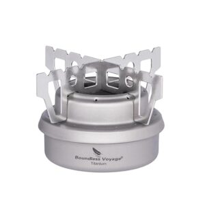 Boundless Voyage チタン アルコールストーブ 五徳付 アルコールバーナー 超軽量41g 頑丈 コンパクト アルコールストーブ 風防 シングルバーナー 登山 防災グッズ アウトドア キャンプ用品 収納袋付き (チタンアルコールストーブ Ti2001C)
