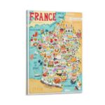 フランスの食品地図をモチーフにしたポスター。サイズは16×24インチ(40x60cm)で、パネルやキャンバス素材。壁にすぐに掛けられ、ホームアートワークとして最適です。
