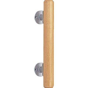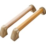 オーダーメイドの木製手すり。壁付け式で乾湿両用。自然木目仕上げ、高強度設計。医療・介護施設向け廊下用で、簡単取り付けが可能。カラーはベージュ、サイズは30CM。
