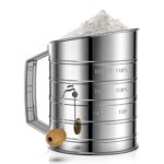 ステンレススチール製の3カップ小麦粉ふるい。ロータリーハンドクランクによるファインメッシュで、均一なふるいが可能。攪拌機とも相性抜群で、ベーキングの効率をアップします。