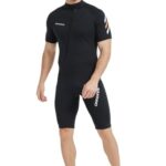 MORGEN SKY メンズ2mmスプリングウェットスーツは、夏のマリンスポーツに最適なデザイン。半袖・前開き・フロントジッパー付きで、快適な着脱を実現。裏ジャージ素材で保温効果あり。3XLサイズ対応。