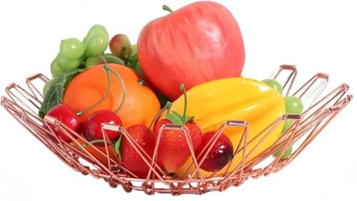Riazdiwの変形可能なフルーツバスケットは、折りたたみ式で金網製、排水可能で、野菜やバスルームでの使用に最適です。サイズは31*31*18.5cm、色はローズゴールドです。