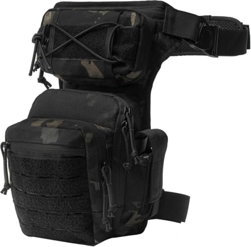 男性用アウトドアマルチポケットツールストレージ、パンクスタイルのレッグバッグ。耐摩耗オックスフォード布使用、日常通勤や自転車両に最適。カラーは黒サソリ迷彩。