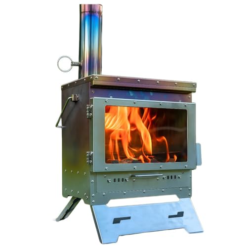 VGVGの薪ストーブは、ステンレス製でガラス窓、煙突、二次燃焼機能を備えています。サイズは340×340×390mmで、組立簡単、収納バッグ付き。超軽量で、キャンプや暖房に最適です。