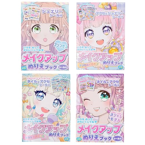 ぬりえ メイクアップ ぬりえブック 全4種×各1冊 計4冊セット (ご家庭 誕生日会 お楽しみ会 向け 小容量) メイクアップシール付き 対象年齢:5歳以上 ガールズ メイク ファッション イメージ 練習 おもちゃ 玩具 ごっこ遊び 縁日玩具 雑貨 プレゼント ごほうび 景品 お祭り 縁日 お楽しみ会の高価買取