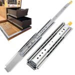 76mm幅のロック付き超重量用スライドレール。耐荷重220kg、3段フルエクステンション、全長3040mm、収納1520mm。Q235冷間圧延鋼材を使用し、亜鉛メッキ処理。家具、キャビネット、トラック、工業、DIYに対応。左右1セット。