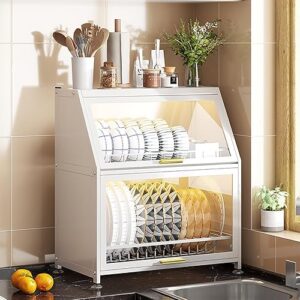 ADOSSY 食器棚 食器水切り 水切りラック キッチン収納ラック 水切りかご 食器収納棚 台所用品ホルダ 食器乾燥ラック 水受け皿付き 大容量 組み立て簡単 省スペース (ホワイト)