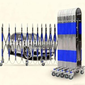 Uhetoice フェンス 屋外 柵 バリケード 伸縮 ガードレール ステンレス鋼 庭 柵 仕切り キャスター付き ガーデンフェンス ペットゲート 置くだけ 門扉 高さ110cm 長さ3-10m 収納便利 工事現場 駐車場 交通 遮断柵 侵入防止 (ブルー, 長さ6m*高さ1.1m)