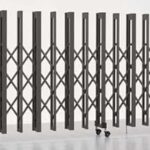 リクシル アルシャイン2 PG型R Aタイプ H12 680W 両開き ノンレールタイプは、アイボリーホワイトのカーゲートです。受注生産品で、スムーズな開閉が特徴の伸縮門扉です。