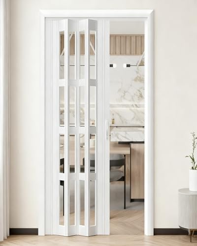 DEOPXF 折りたたみドアは環境に優しいPVC素材を使用したアコーディオンドアです。防水、防湿、難燃、遮音、断熱性に優れ、滑車でスムーズに開閉可能。キッチンや寝室、リビングに適合。サイズ: 110x190cm。