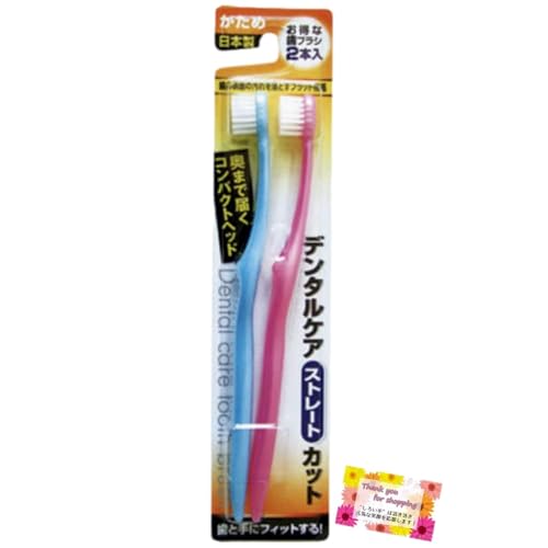 奥まで届くコンパクトヘッドで、頑固な汚れをかき出す日本製の歯ブラシ。デンタルケアストレートカットでかためのブラシが、オーラルケアをサポート。水色とピンクの2本セット。