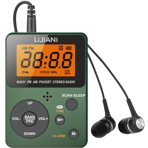 LIJIANI小型AM FMラジオは優れた受信性能を持ち、単4電池で動作。ミニデジタルチューニングと大型LCD画面、ロックスクリーン付き。ウォークやジョギング、ジム、キャンプに最適。