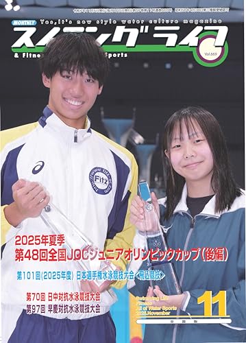 スイミングライフ2025年11月号では、最新の水着特集や、フィットネス用具、台風シーズンの安全な泳ぎ方等の情報が掲載されています。また、アイテムレビューや選手インタビューも充実しています。