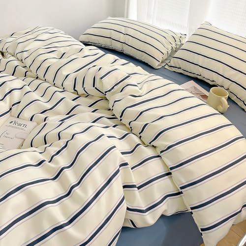 LOADFUNの布団カバーセットは、ダブルサイズのイエローで、全周ゴム付き。肌触りが良く、通気性と速乾性に優れ、丸洗いOK。おしゃれな北欧ストライプデザインでインテリアにも最適。