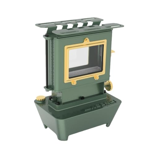 Vifxucyのレトロなオイルランプ3in1キャンプストーブは、鉄製のヒーターと照明、調理器具を兼ね備えたポータブル多機能機器です。アウトドアでの使用に最適なグリーン色のデザイン。