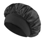 女性用の調節可能なサテンスリープボンネットです。カーリーヘアケアや縮れ防止に最適な2層設計で、ブラックのワンサイズになります。