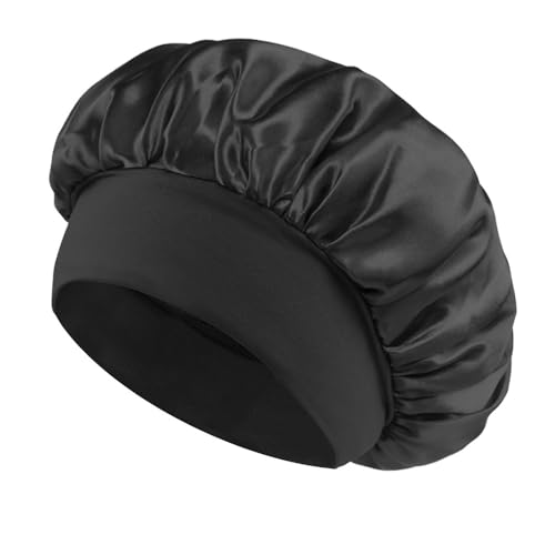 女性用調節可能なサテンスリープボンネット-カーリーヘアケア&縮れ防止用の2層ナイトキャップ, ブラック, One Sizeの高価買取