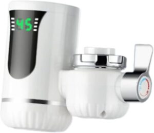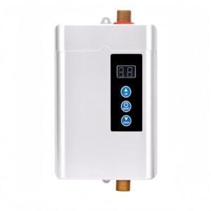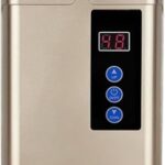 家庭用ミニ電気温水器は、瞬間湯沸かし器で小型ながら高性能。キッチンや浴室に最適なデザインで、効率的に温水を供給。エレガントなゴールド仕上げ。