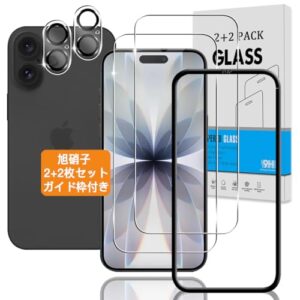 iPhone 17 用 ガラスフィルム レンズ保護フィルム 4枚セット 米軍の資材 超簡単貼り付け ワンプル(ワンプッシュ装着)気泡レス Screen Camera Protector for iPhone 強化ガラス 液晶 全面保護 最強硬度 耐衝撃 高透過率 指紋防止 貼りやすい 超クリア画質 目の疲れ軽減 3D Touch対応【2* フィルム + 2* カメラ保護フィルム+ ガイド枠付き+ 取り除き発泡板】対応(6.3インチ)9H+硬度 (iPhone 17) 高価買取中