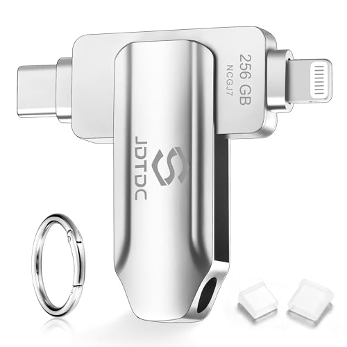 Apple MFi認証の256GB USBメモリ。Lightning/Type-C両対応で、iPhone 17/16/15やiPadに対応。写真・動画・連絡先のバックアップに最適な外付けストレージ。