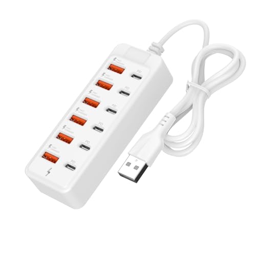 12ポートのマルチデバイス充電ハブ。USBとType-Cに対応し、スマホ、タブレット、PCを同時に充電可能。家庭用や旅行にも最適なアダプタです。