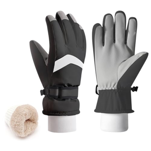 スノー手袋キッズ用のスキーグローブ。調節可能で防寒・撥水・裏起毛機能あり。スマホ対応、紛失防止、滑り止め付き。サイズはM(6~8歳)、カラーはブラック。