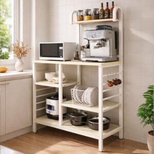 Anovara(アノヴァラ) レンジラック レンジ台 大型レンジ対応 キッチンラック 幅88*奥行40cm キッチン棚 キッチン収納 ラック レンジボード キッチンカウンター 食器棚 省スペース おしゃれ (ナチュラル木色)