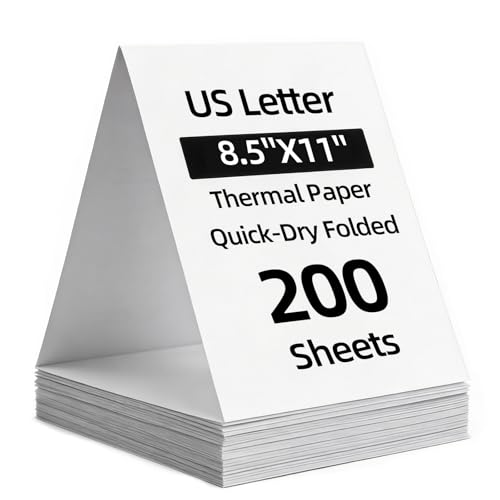 サーマルプリンター用紙 8.5 x 11インチ、200枚 A4 レターサイズ 速乾 ファンフォールド、高度な印刷用紙、ほとんどのレターサーマルポータブルプリンター(TP-01)に適合の高価買取