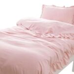 LumingLightシングル3点セットはかわいいフリルデザインで、吸汗性と光沢のあるピーチスキン素材を使用。掛布団カバー、ボックスシーツ、枕カバーが含まれ、ずれ防止機能付き。ピンク色でおしゃれな寝具です。[並行輸入品]