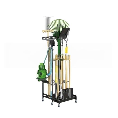 Vifxucyガーデンツール収納は、鉄製の多機能倉庫ストレージです。シャベルホルダーと滑車付きで簡単に移動でき、省スペースで車庫や庭に最適な工具整理ラックです。