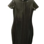 VIYOLI レディースラテックスドレスは、ハイネックデザインとバックジップが特徴。ショールーム用の白い4XLサイズで、スタイリッシュな印象を与えます。