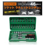 【DIY〜本格修理まで】ソケットレンチ46種セット。ラチェットレンチやソケットドライバーを含む工具が揃い、バイクや車、自転車の整備に最適。差込角は6.3mm(1/4インチ)で、便利なケース付き。