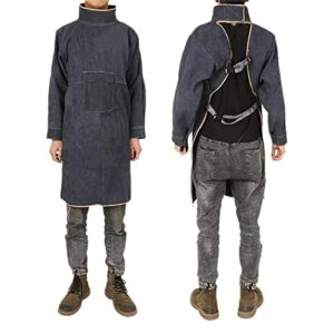 [Dehocos] 溶接 エプロン 牛革 作業エプロン メンズ 大判タイプ 溶接用 エプロン 防護服 作業服 電気溶接 ツールポケット耐熱 耐高温 耐久性 防炎 難燃 やけど対策 (ブラックブルー, フリーサイズ)