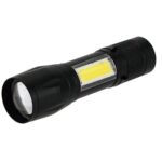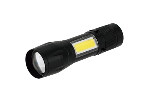 カクセー クロスグランド ミニフォーカスライトは、約2.1×2.4×9cmのコンパクトサイズで、ブラックカラーが特徴です。持ち運びやすく、手軽に使用できるため、アウトドアや非常用として便利です。