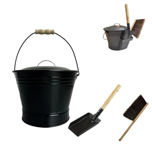 Kiwet 1.5ガロン金属製アッシュバケツ、灰入れバケツ 壁炉用 灰受けバケツセット3点セット 蓋、シャベル、ほうき付き – 暖炉、薪ストーブ用 焚き火台・グリル・薪ストーブ対応|灰収容・運搬・清掃一括ソリューション (3点セット) 高価買取中