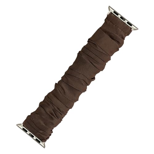 シルク100%のアップルウォッチバンド。おしゃれで蒸れないシュシュデザイン。対応サイズは38mmから44mmまで。かわいい細身のスタイルで、大きいサイズにも対応(ブラウンカラー)。