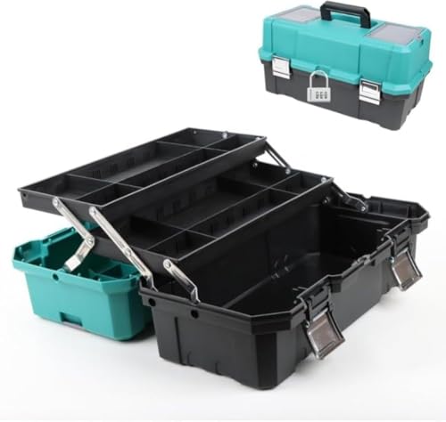 Zxylerツインボックス3段折りたたみ式工具箱大容量に収納南京錠付きブルー/イエローハンドル付き収納車載防災用品アウトドア強靭高耐久防盗 (18インチ,ブルー)の製品情報