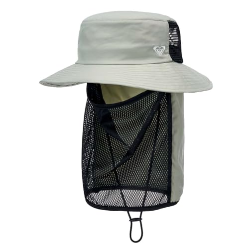 ロキシーのサーフハットは、UVカットUPF50+で大人用のアウトドアやマリンスポーツに最適。フェイスマスク付きで、快適な着用感を提供します。サイズはフリー、カラーはOLV。