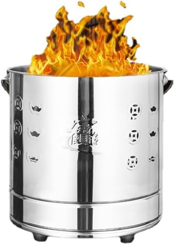 JINZHANG ステンレス紙バケツは無煙で家庭用の焼却炉です。耐蝕性・耐熱性に優れ、煙突付きで無臭。落ち葉やゴミの焼却に最適で、燃焼補助グリッドと延長消火フックが付属しています。