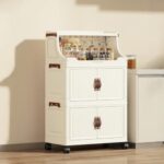 幅48×奥行28×高さ78cmの収納ケース。キャスター付きで移動が簡単、扉付きでスッキリ収納。折りたたみ可能で省スペース、おしゃれなデザイン。組立簡単、大容量収納で一人暮らしにも最適。