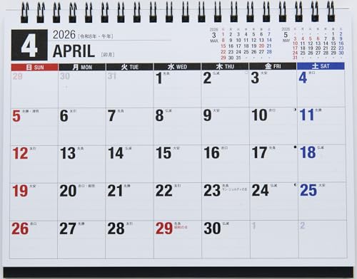 高橋の2026年4月始まり卓上カレンダーB6サイズ(T154)は、使いやすいレイアウトで実用性が高く、デザインもシンプルでスタイリッシュ。デスク上でのスケジュール管理に最適です。