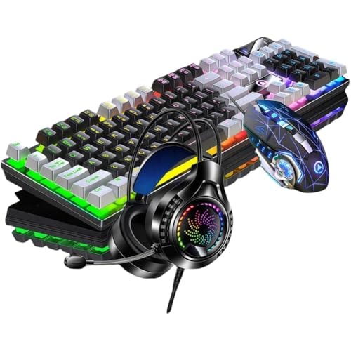 USB接続のK500メカニカルゲーミングキーボードとマウスセット。光るキーボード、マウスパッド、ヘッドフォン付き。騒音低減で快適な使用感。色は黒とグレー。