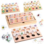 モンテッソーリ玩具で、3〜5歳向けの4in1型はめパズル。動物の影合わせや数字認識、色彩・形状認知を楽しむ知育玩具。集中力や観察力を育てる木製の教育玩具。収納ケースと日本語説明書付き。誕生日やクリスマスのプレゼントに最適。